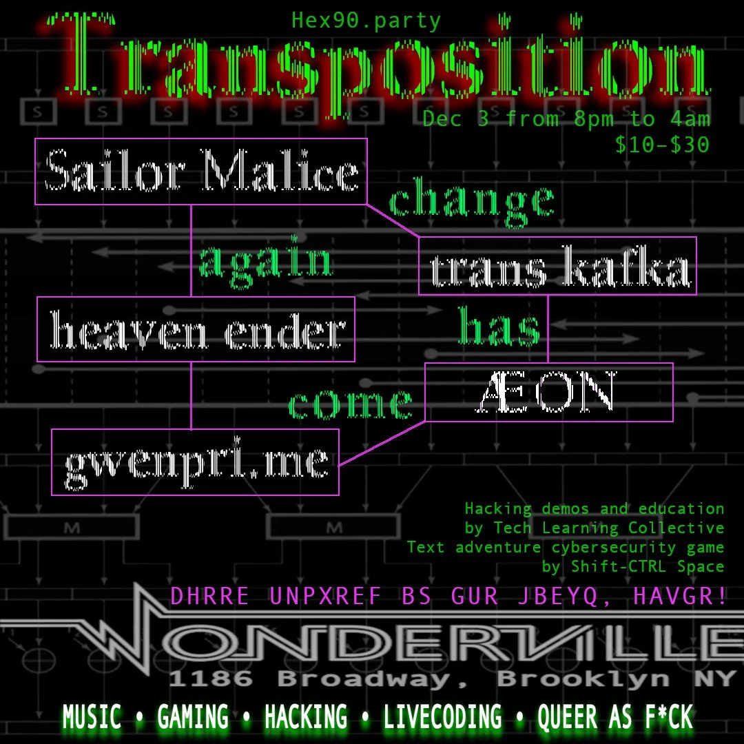 Transitions make us powerful. Transformation showed us difference, gave us perspective, and taught us adaptability. We have learned to reconfigure the world through command injection, and to reconfigure ourselves through hormonal injections. To hackers, these are the same: when we reconfigure ourselves, we reconfigure the world. When we reconfigure the world, we reconfigure ourselves.
