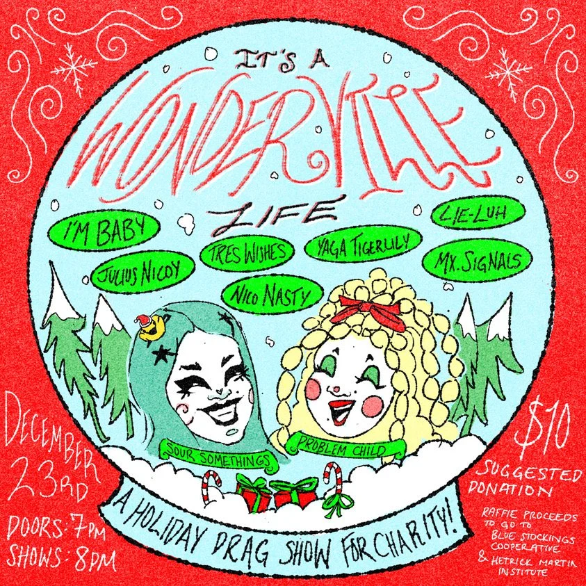 All we want for Christmas is queer liberation and for you to hitch a sleigh ride to “It’s A Wonderville Life!” hosted by problemchild_nyc & mxsoursoursour on December 23rd at Wonderville!